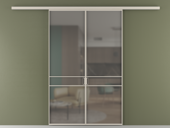 Во всех алюминиевых перегородках, независимо от типа установки, используется компланарный раздвижной механизм, благодаря которому декоративная крышка и полотно находятся в одной плоскости.