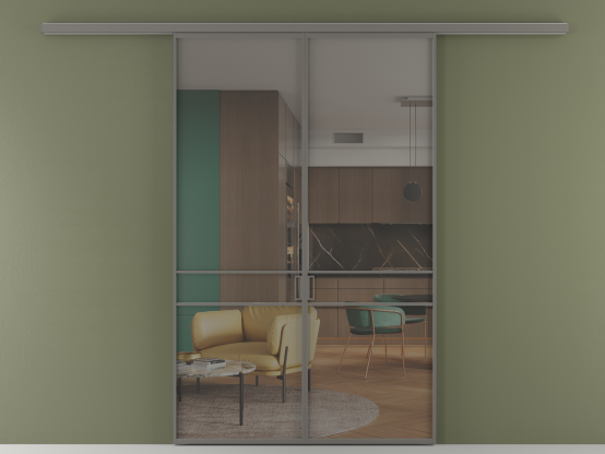 Во всех алюминиевых перегородках, независимо от типа установки, используется компланарный раздвижной механизм, благодаря которому декоративная крышка и полотно находятся в одной плоскости.
