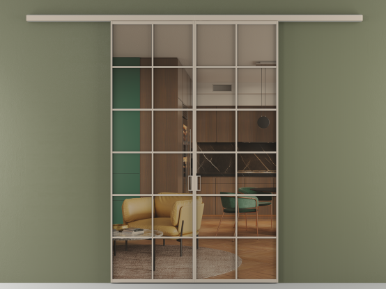 Во всех алюминиевых перегородках, независимо от типа установки, используется компланарный раздвижной механизм, благодаря которому декоративная крышка и полотно находятся в одной плоскости.