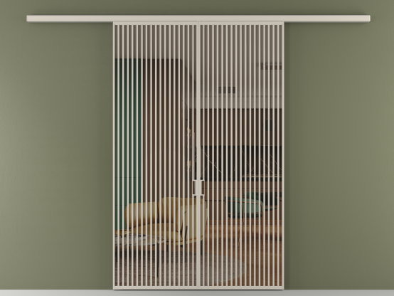 Во всех алюминиевых перегородках, независимо от типа установки, используется компланарный раздвижной механизм, благодаря которому декоративная крышка и полотно находятся в одной плоскости.
